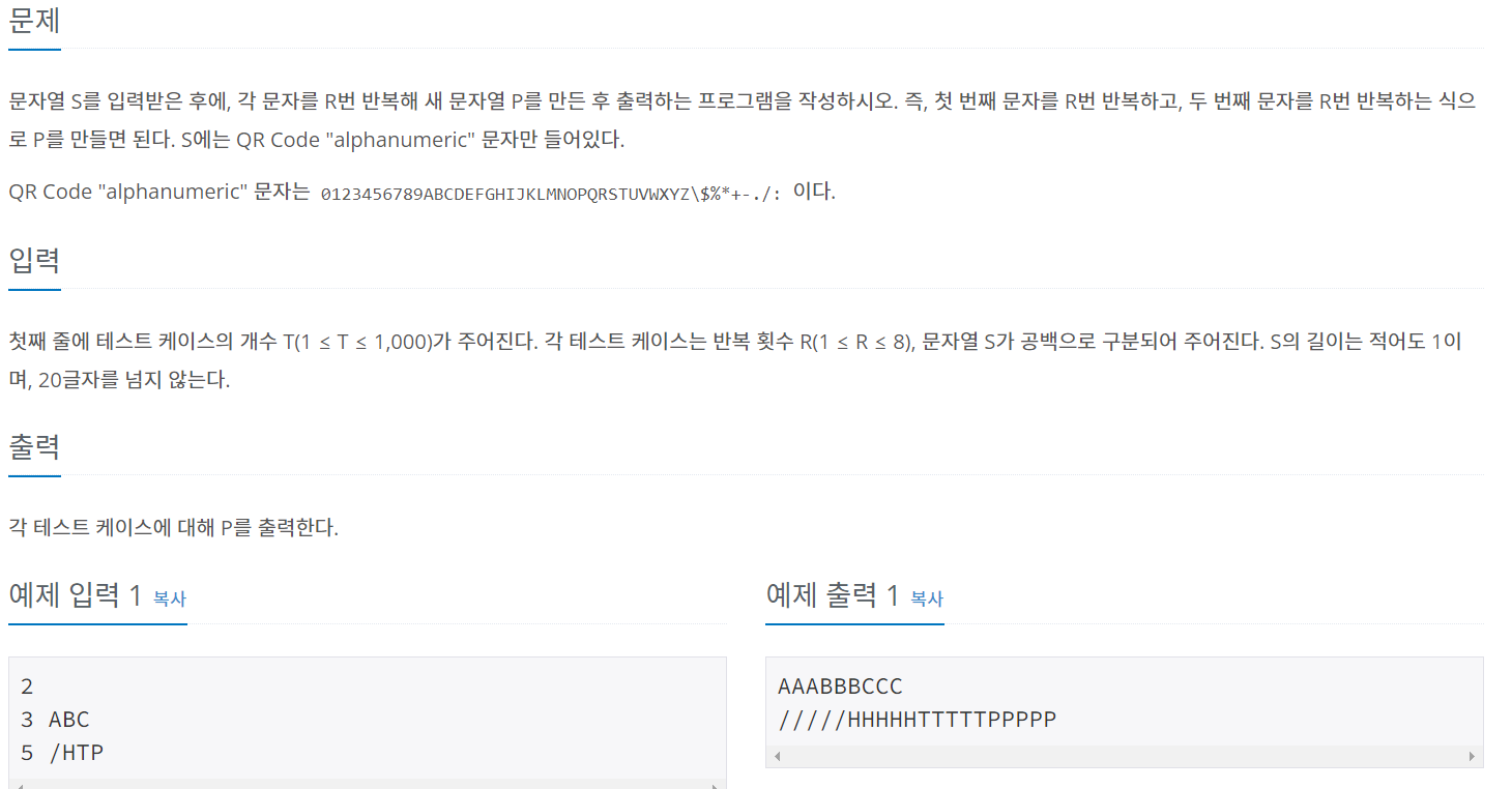 R번 만큼 반복해서 출력 할 for문을 넣는다.