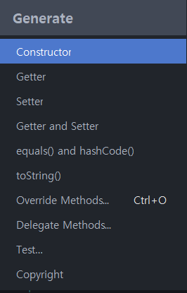 ALT + Insert 를 누르면 이렇게 뜬다.