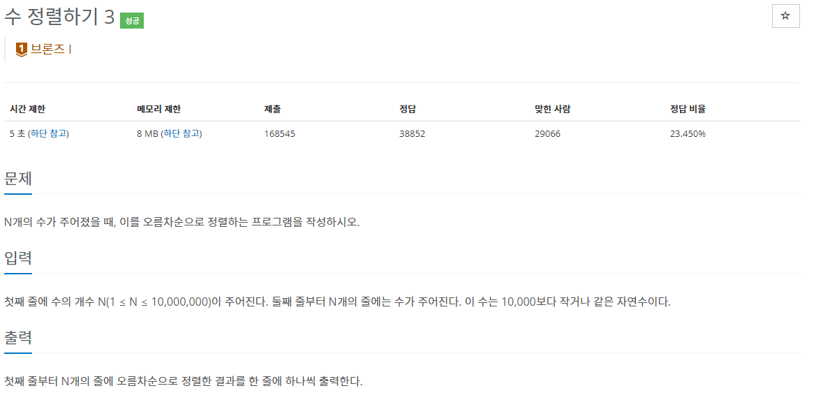 일단 정렬을 해야하는 숫자가 엄청 많아졌고 시간 제한까지 있어서 최대한 시간을 절약하는 방법을 사용하면 될 것 같았다.