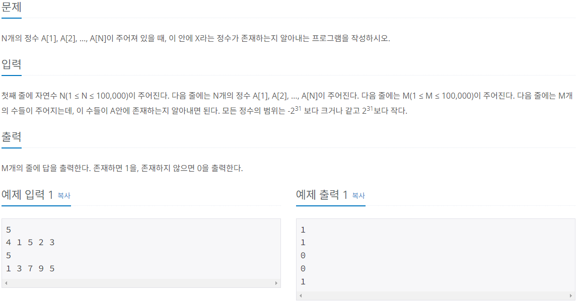 문제 링크 : https://www.acmicpc.net/problem/1920